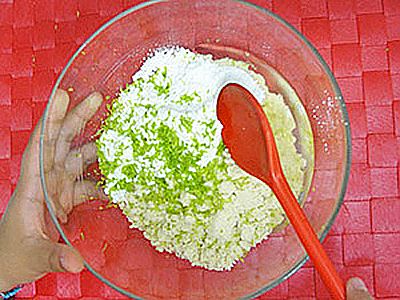 1. Separar la yema de la clara, y montar esta última a punto de nieve con un poquito de sal. En un recipiente ponemos las almendras con el azúcar, la ralladura de un limón, y la clara montada. Mover bien la masa hasta que tengamos una pasta homogénea. Dejar reposar durante un par de horas.