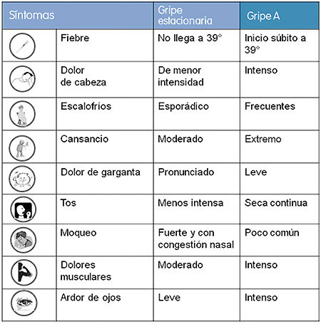 - Diferencias entre los síntomas de la gripe estacionaria y la gripe A en los bebés y niños